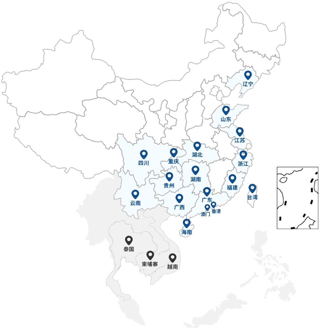 銷售網點主要集中在華南、西南地區,占據華南地區較大市場份額,并向華東、華北、港澳臺地區及海外市場拓展 。